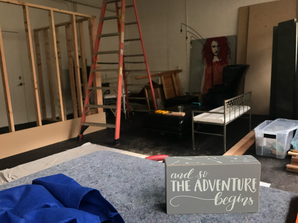 Eventually we circled back to a unit we had previously passed on (it’s not ADA accessible and that is still an issue for us and many others). But, it was what we could afford and it was available! It was un ugly, dusty, empty white box. It had zero charm. But we loved the discretion of the location and knew we could transform it with the perfect shade of burgundy velvet, with spit & glitter, with a dominatrixes’ touch.